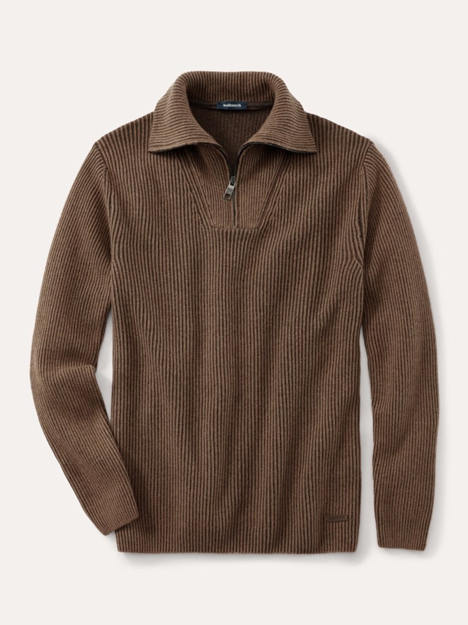 - Rollkragenpullover: Braune Rollkragenpullover sind bei Walbusch in Feinstrick und Rippenstrick erhältlich. Für einen Blickfang sorgen Details wie abgesetzte Schulternähte oder breite Bündchen. Den Rollkragen Ihres Strickpullovers tragen Sie ganz nach Belieben entweder umgeschlagen für den klassischen Look oder nach oben offen, wenn es etwas lässiger sein darf. An kalten Tagen ist der braune Rollkragenpullover ein wärmender Begleiter, der sich aufgrund seiner zurückhaltenden Farbe perfekt zum Layering unter Jacken oder Mänteln eignet.
