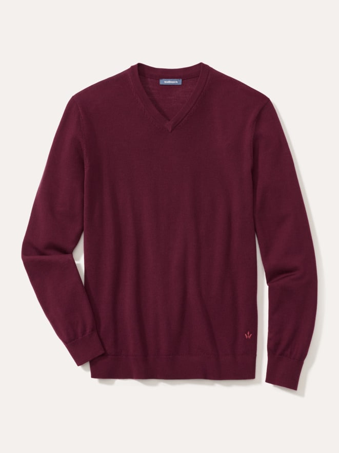 Herren-Pullover mit V-Ausschnitt sind die elegante Alternative zum Rundhals-Pullover . Während der klassische Rundhalsausschnitt eher sportlich-lässig wirkt, verleiht der charakteristische v-förmige Ausschnitt Ihrem Outfit gekonnt eine extravagante Note. Wie der Buchstabe, läuft der V-Ausschnitt nach unten hin spitz zu – dabei streckt er optisch Ihren Oberkörper und Ihren Hals .