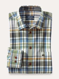 Für den Sommer bieten wir Ihnen karierte Hemden aus leinenähnlichen Baumwoll-Polyester-Mischungen. Das luftdurchlässige Gewebe der Hemden aus Leinenstoff sorgt dafür, dass Sie auch bei hohen Temperaturen nicht ins Schwitzen kommen. Dagegen eignen sich karierte Hemden aus weichem, wärmendem Flanell insbesondere für kalte Wintertage. Für die Thermo-Funktion dieser karierten Flanellhemden wird die Baumwolle leicht angeraut, sodass kleine Lufträume zwischen den Fasern entstehen, die Wärme speichern und isolierend wirken. Bei einigen Modellen wird der Baumwolle außerdem Schurwolle beigemischt, die die Karohemden besonders kuschelig macht und klimatisierend wirkt.